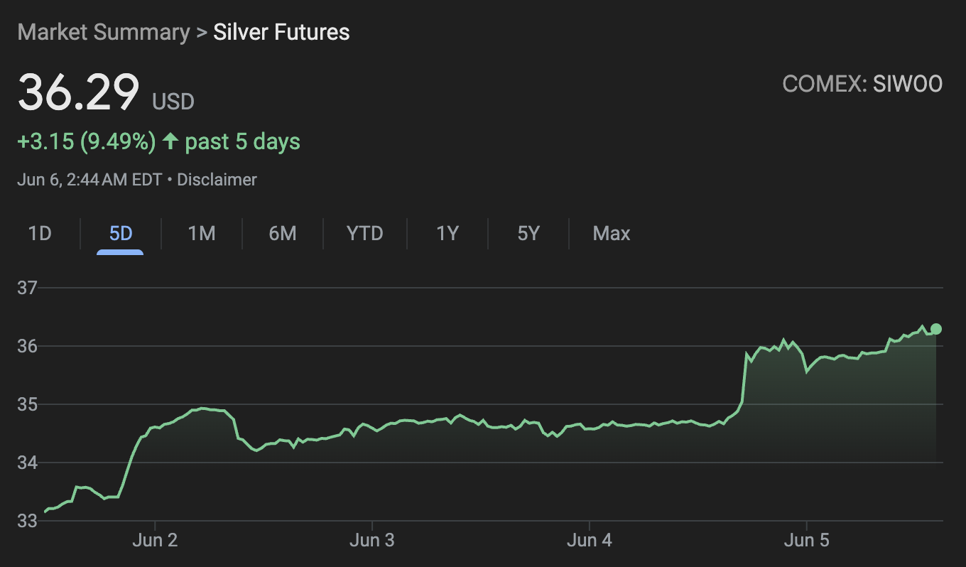 Silver prices have experienced a remarkable rally, climbing over 10% in just five days and reaching a 13-year high of $36.08 per ounce as of June 5, 2025. This surge is attributed to a confluence of factors, including robust industrial demand, persistent supply deficits, and heightened investor interest amid global economic uncertainties. To gain deeper insights into this phenomenon, we consulted experts at Si Iver, a leading silver dealership, who provided their perspectives on the driving forces behind silver's recent ascent.