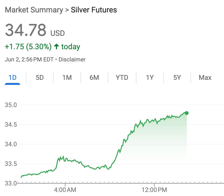 At 2:56 PM EDT on June 2, silver futures were trading at $34.78 per ounce, marking a 5.30% gain on the day, or an increase of $1.75. For silver dealers, investors, and industrial buyers, this surge offers more than just a momentary jolt—it signals the continuation of structural forces reshaping the silver market in 2025.